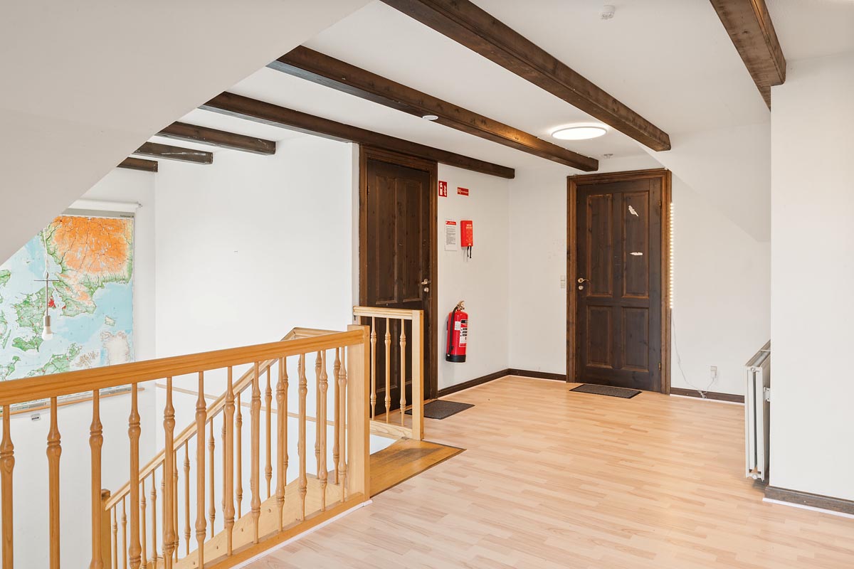 Boligerne er fordelt på fire bygninger, der har et samlet boligareal på 579 m². Dertil erhvervsarealet på 296 m². Bygninger rummer blandt andet 9 lejligheder med separat indgang, opholdsstue, køkken, fitnessrum og en biograf. Derudover findes der også flere værksteder.